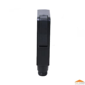 Gatilho quadrado preto fosco para ducha higiênica. Fabricado em ABS – plástico de engenharia de alta resistência e durabilidade. Possui alavanca para acionamento e controle do jato d'água.