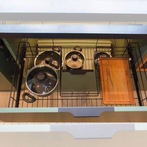 A gaveta armada deslizante com recorte para sifão, equipada com corrediças telescópicas largas e com acabamento cromado, é um componente de mobiliário projetado para otimizar o espaço em móveis de cozinha, especialmente aqueles sob a pia. A gaveta deslizante é projetada com um recorte especial na parte de trás para acomodar o sifão do encanamento da pia. Isso permite que a gaveta se ajuste perfeitamente mesmo em espaços limitados sob a pia, garantindo que o espaço seja completamente utilizado. A utilização de corrediças telescópicas largas oferece um deslizamento suave e silencioso da gaveta. Essas corrediças permitem que a gaveta seja puxada para fora de forma fácil e segura, proporcionando acesso total ao conteúdo do móvel. A gaveta armada deslizante, equipada com corrediças telescópicas largas e acabamento cromado da Dimec Aramados, é uma solução prática e elegante para otimizar o espaço de armazenamento em móveis de cozinha, especialmente sob a pia. Ela é uma opção atraente para quem busca conveniência, qualidade e durabilidade em seus móveis de cozinha.