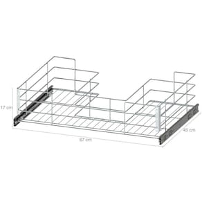 Garantia: 90 dias / Peso: 2,698kg / Cor predominante: cromado / Ref: 7899085137984; Dimensões da gaveta aramada: 67cm (C) x 45cm (L) x 17cm (A); Dimensões módulo de instalação: 67cm (C) x 50cm (L) x 20cm (A); Dimensões área sifão: 22,8cm (C); Material: aço carbono; Conteúdo: 1 gaveta aramada deslizante com recorte para sifão; Cuidados: limpeza sem material abrasivo e solventes, de preferência apenas pano umedecido com água e detergente.