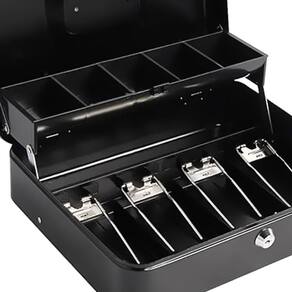 Caixa de Armazenamento de Dinheiro com Trava e Alça para Diversas Ocasiões Esta caixa de armazenamento de dinheiro é uma solução versátil e conveniente para diferentes situações, oferecendo praticidade e segurança para o manuseio de dinheiro, moedas, joias, relógios e objetos de valor. Com sua construção resistente em metal, alça conveniente e trava de segurança, é uma escolha confiável para diversas ocasiões. Principais Características:Ampla Aplicação: Perfeita para supermercados, vendas de garagem, feiras, shows de artesanato, gaveta de dinheiro, caixa, entre outros.Material Resistente: Feita de metal durável, proporcionando robustez e longa vida útil.Alça Conveniente: Equipada com uma alça resistente para facilitar o transporte e esconder a caixa de forma discreta. Tamanho Adequado: Com dimensões de 11,81''x9,45''x3,54'', oferece espaço suficiente para armazenar dinheiro, moedas e objetos de valor.Trava com Chave (Key Lock): Fornece armazenamento seguro e conveniente do dinheiro, ideal para arrecadação de fundos e vendas. Detalhes Adicionais:Cinco Compartimentos para Moedas: A bandeja de moedas possui cinco compartimentos, mantendo as moedas organizadas durante o transporte.Quatro Compartimentos para Notas com Clipes de Mola: Mantêm o dinheiro em papel no lugar, garantindo organização.Grande Capacidade: Ideal para armazenar dinheiro, moedas, chaves, cheques e outros objetos de valor.Alça Embutida: Projetada para facilitar o armazenamento e transporte, tornando-a portátil e útil para diversas situações. Especificações Técnicas:Material: Ferro MetálicoCor: PretoTamanho: Aprox. 30x24x9cmPeso: Aprox. 2030 g Esta caixa de dinheiro é uma solução versátil para o controle seguro e organizado de dinheiro em diferentes contextos.Seja para uso comercial, eventos ou arrecadação de fundos, sua estrutura robusta e recursos práticos a tornam uma escolha confiável para diversas ocasiões.