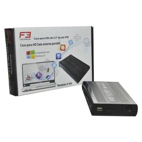 - 01x Case para HD Externo 3,5 Sata Usb 2.0 F05 - 01x Fonte de Alimentação - 01x Chave Philips - 01x Cabo USB 2.0