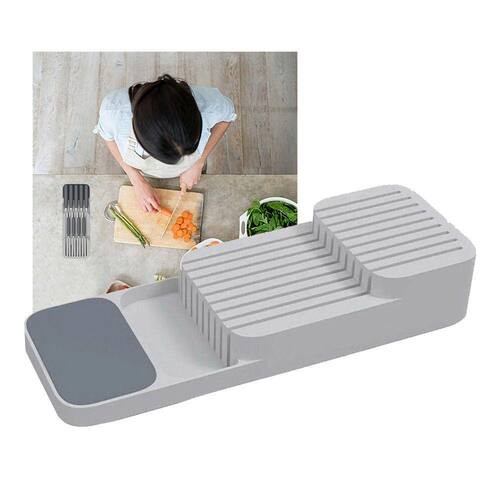 Armazenar facas afiadas nas gavetas pode ser perigoso e também pode danificar as lâminas caras. Este organizador de facas de 2 camadas é a solução perfeita proporcionando armazenamento seguro e fácil acesso a uma variedade de facas de cozinha.