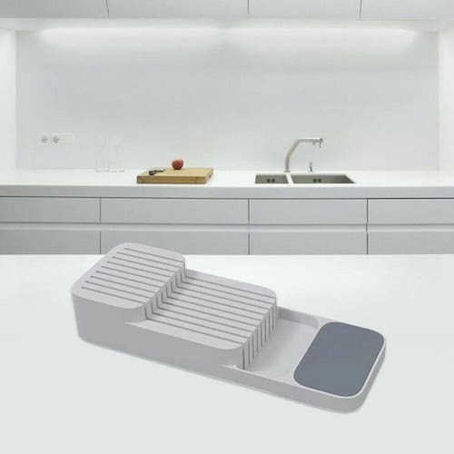 Armazenar facas afiadas nas gavetas pode ser perigoso e também pode danificar as lâminas caras. Este organizador de facas de 2 camadas é a solução perfeita proporcionando armazenamento seguro e fácil acesso a uma variedade de facas de cozinha.