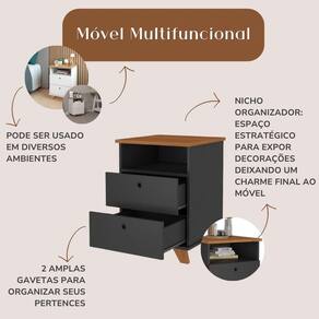 Características do Gaveteiro 2 Gavetas com Nicho Pequeno Daya: - Tampo em MDP 18mm com fita de borda PVC com 1mm de espessura; - Estrutura em MDP 15mm com fita de borda PVC com 0,45mm de espessura; - Pés com feltro autoadesivo para proteger o piso; - 2 Gavetas com corrediças metálicas; - Possui Nicho; - Fixação com tambor e parafuso minifix; - Acabamento em BP; - Peso suportado: 10Kg tampo, 5Kg por gaveta; - Medidas internas da gaveta: 350x334x107mm (CxPxA); - Não acompanha objetos decorativos; - Montagem por conta do comprador;