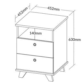 Dimensões do Gaveteiro 2 Gavetas com Nicho Pequeno Daya: