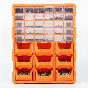 Ideal para armazenar parafusos, buchas, pregos, peças pequenas, acessórios e materiais diversos.