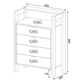 Características: Estrutura em MDP Acabamento BP 4 Gavetas Corrediça metálica Puxador em alumínio Tampo suporta até 5 kg Gavetas suportam até 3 kg cada