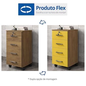 Prático e versátil, o gaveteiro gávea pode ser utilizado em vários ambientes, escritório ou local de estudo até servir no quarto como mesa de cabeceira! Produto todo em MDP 15 mm com 4 gavetas sendo 1 com chave e rodízios para fácil movimentação. Ele ainda conta com a possibilidade de ser montado com as frentes na cor amarela. Para compor o ambiente, adquira o livreiro e gaveteiro da linha office também! Acabamento da Gaveta: Pintura Ambiente Principal: Escritório Complexidade da Montagem: Alta: deve ser montado por um montador especializado Cor: Freijó/Amarelo Trama Cor do Produto: Freijó/Amarelo Trama Cor Flex: Sim. Frente do Gaveteiro opcional na cor Amarelo. Escala de Brilho: Semi-Brilho Gaveta com Chave: 01 Itens Inclusos: Gaveteiro Gávea Flex + Manual de Montagem Manual de Montagem e Instalação: https://cdn2.madeiramadeira.com.br/atributo/moveis-leao/1208036-40722-manual-de-montagem-gaveteiro-gavea-flex.pdf Material da Gaveta: MDP Material Principal: MDP Necessita Montagem: Sim Origem do Produto: Nacional Peso: 14,5 kg Peso Máximo por Gaveta: 2 kg Possui Portas: Não Possui Prateleiras: Não Recomendações de Uso, Manutenção e Limpeza: Limpeza apenas com um pano úmido. Não utilizar produtos químicos ou abrasivos. Rodízio com Trava: Não Sapatas Niveladoras: Não Sistema de Montagem: https://cdn2.madeiramadeira.com.br/atributo/moveis-leao/1208036-40722-manual-de-montagem-gaveteiro-gavea-flex.pdf Suporta Até (kg): 15 kg Tipo de Corrediça da Gaveta: Metálica Simples Tipo de Puxador da Gaveta: Externo