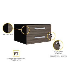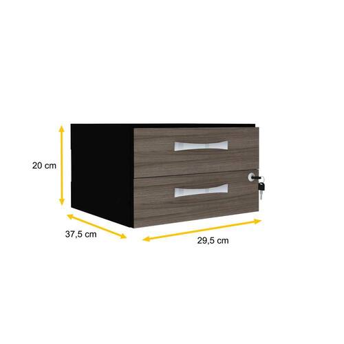 Faltando aquele toque de organização na sua mesa de trabalho? Esse gaveteiro aéreo nas cores madeira escura e preto é uma peça complementar para mesas que precisam de organização extra. Resistente, funcional e com tranca em uma de suas gavetas, ele permite que você guarde documentos, registros, pacotes e tudo o que for importante para a sua vida profissional, com a maior segurança possível. Projetado em aço e revestido em madeira MDP, este gaveteiro de 2 gavetas pode ser instalado embaixo de mesas da linha Maxxi Pandin em poucos passos, tornando-se uma opção viável para uma transformação prática e funcional, tanto no ambiente quanto no móvel. Ideal para quem precisa de praticidade, segurança e resistência no mesmo pedido. Esse item faz parte da Linha Maxxi de móveis para escritório da Pandin, a linha ideal para quem procura por ambientes de trabalho funcionais com alto valor agregado e formatos que permitem diversas formas de ambientação. Aposte certeiro na Linha Maxxi Pandin quando o assunto for praticidade, qualidade e versatilidade.