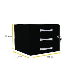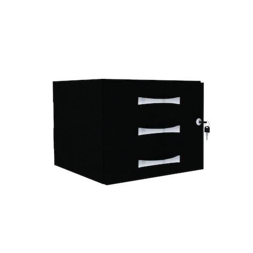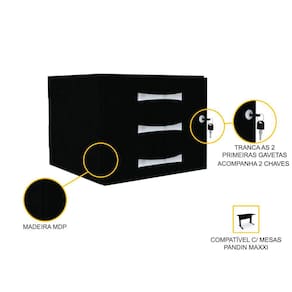 De aéreo só o nome técnico - porque esse gaveteiro preto vai ancorar direitinho no seu escritório e auxiliar na organização do seu dia a dia! Com suas três gavetas, ele é ideal para quem precisa otimizar espaço e guardar documentos, objetos profissionais e pessoais, papelada, papéis, cartas e tudo o que você precisar. Esse módulo é um complemento para as mesas da linha Maxxi da Pandin, tornando-se uma opção prática e viável para mudanças rápidas. Projetado em aço e revestido em madeira MDP, este gaveteiro de 3 gavetas pode ser instalado abaixo de mesas em poucos passos e dá a você toda a segurança que precisa, com a possibilidade de trancar as duas gavetas superiores. Esta peça feita para quem preza por organização e segurança faz parte da Linha Maxxi de móveis para escritório da Pandin, a linha ideal para quem procura por ambientes de trabalho funcionais e formatos que permitem diversas formas de ambientação. Aposte certeiro na Linha Maxxi Pandin quando o assunto for praticidade, qualidade e versatilidade.