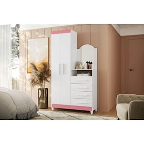Feito 100% em MDP, além de possuir 2 portas, 4 gavetas, pés de ABS, cabideira de madeira e espelho.