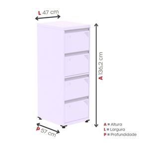Produto confeccionado em chapa de aço 26 e 24, destinado a utilização de armazenamento de documentos por meio de pastas suspensas, com visual moderno possibilitando uma harmonia em seu ambiente de trabalho. Acabamento da Gaveta: Pintura Ambiente Principal: Escritório codigo_ean: 7900288096050 Complexidade da Montagem: Média: pode ser montado por mais de uma pessoa e/ou necessite de maior conhecimento para montagem Cor: Lilás Cor do Produto: Lilas Cor Flex: Não Cor Interna: Lilas Escala de Brilho: Semi-Fosco Escala de Brilho da Gaveta: Semi-Fosco Gaveta com Chave: 01 Informações Complementares: Utilizar um pano levemente umedecido com água, para finalizar utilizar um pano seco. Itens Inclusos: 1 Gaveteiro, 1 Kit Ferragens e 1 Manual de Montagem Linha ou Coleção: OF04SLTCM Manual de Especificação Técnica: https://product-hub-prd.madeiramadeira.com.br/980505/documents/1eb493df-5e3d-4bec-aea6-73b7edc76d514b9957af9e86721411e9870011.pdf Manual de Montagem e Instalação: https://product-hub-prd.madeiramadeira.com.br/980505/documents/4c12f2ee-15a4-45e7-a32d-acc25bfc1c1d5b6040845125925711e9870011.pdf Marca: Pandin Móveis Material da Gaveta: Aço Material Principal: Aço Montagem Flex: Não Necessita Montagem: Sim Origem do Produto: Nacional Peso: 24,76 kg Peso Máximo por Gaveta: 25 kg Possui Acabamento na Parte de Trás: Não Possui Gaveta para Pasta Suspensa: Sim Possui Portas: Não Possui Prateleiras: Não Recomendações de Uso, Manutenção e Limpeza: Utilizar um pano levemente umedecido com água, para finalizar utilizar um pano seco. Sapatas Niveladoras: Sim Sistema de Montagem: Encaixe Suporta Até (kg): 100 kg Tipo de Corrediça da Gaveta: Metálica Telescópica Tipo de Gaveteiro: De Chão Tipo de Puxador da Gaveta: Embutido