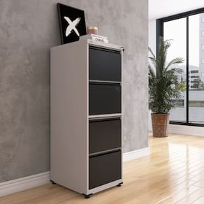 Produto confeccionado em chapa de aço 26 e 24, destinado a utilização de armazenamento de documentos por meio de pastas suspensas, com visual moderno possibilitando uma harmonia em seu ambiente de trabalho. Acabamento da Gaveta: Pintura Ambiente Principal: Escritório codigo_ean: 7900288086051 Complexidade da Montagem: Média: pode ser montado por mais de uma pessoa e/ou necessite de maior conhecimento para montagem Cor: Cinza/Preto Cor do Produto: Cinza/Preto Cor Flex: Não Cor Interna: Cinza/Preto Escala de Brilho: Semi-Fosco Escala de Brilho da Gaveta: Semi-Fosco Gaveta com Chave: 01 Informações Complementares: Utilizar um pano levemente umedecido com água, para finalizar utilizar um pano seco. Itens Inclusos: 1 Gaveteiro, 1 Kit Ferragens, 1 Manual de Montagem Linha ou Coleção: OF04SLTCM Manual de Especificação Técnica: https://product-hub-prd.madeiramadeira.com.br/980513/documents/cf2cbe71-5eab-413f-8127-648193a76ca24b9957af9e86721411e9870011.pdf Manual de Montagem e Instalação: https://product-hub-prd.madeiramadeira.com.br/980513/documents/550cbc2b-ac4d-411d-88a7-0ea6475137035b6040845125925711e9870011.pdf Marca: Pandin Móveis Material da Gaveta: Aço Material Principal: Aço Montagem Flex: Não Necessita Montagem: Sim Origem do Produto: Nacional Peso: 24,76 kg Peso Máximo por Gaveta: 25 kg Possui Acabamento na Parte de Trás: Não Possui Gaveta para Pasta Suspensa: Sim Possui Portas: Não Possui Prateleiras: Não Recomendações de Uso, Manutenção e Limpeza: Utilizar um pano levemente umedecido com água, para finalizar utilizar um pano seco. Sapatas Niveladoras: Sim Sistema de Montagem: Encaixe Suporta Até (kg): 100 kg Tipo de Corrediça da Gaveta: Metálica Telescópica Tipo de Gaveteiro: De Chão Tipo de Puxador da Gaveta: Embutido