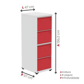 Produto confeccionado em chapa de aço 26 e 24, destinado a utilização de armazenamento de documentos por meio de pastas suspensas, com visual moderno possibilitando uma harmonia em seu ambiente de trabalho. Acabamento da Gaveta: Pintura Ambiente Principal: Escritório codigo_ean: 7900288086228 Complexidade da Montagem: Média: pode ser montado por mais de uma pessoa e/ou necessite de maior conhecimento para montagem Cor: Cinza/Vermelho Cor do Produto: Cinza/Vermelho Cor Flex: Não Cor Interna: Cinza/Vermelho Escala de Brilho: Semi-Fosco Escala de Brilho da Gaveta: Semi-Fosco Gaveta com Chave: 01 Informações Complementares: Utilizar um pano levemente umedecido com água, para finalizar utilizar um pano seco. Itens Inclusos: 1 Gaveteiro, 1 Kit Ferragens, 1 Manual de Montagem Linha ou Coleção: OF04SLTCM Manual de Especificação Técnica: https://product-hub-prd.madeiramadeira.com.br/980516/documents/bc8f5730-cadd-4d2e-a157-02fd374d1e6f4b9957af9e86721411e9870011.pdf Manual de Montagem e Instalação: https://product-hub-prd.madeiramadeira.com.br/980516/documents/635339ab-9aa8-4531-a1c1-373de02920b15b6040845125925711e9870011.pdf Marca: Pandin Móveis Material da Gaveta: Aço Material Principal: Aço Montagem Flex: Não Necessita Montagem: Sim Origem do Produto: Nacional Peso: 24,76 kg Peso Máximo por Gaveta: 25 kg Possui Acabamento na Parte de Trás: Não Possui Gaveta para Pasta Suspensa: Sim Possui Portas: Não Possui Prateleiras: Não Recomendações de Uso, Manutenção e Limpeza: Utilizar um pano levemente umedecido com água, para finalizar utilizar um pano seco. Sapatas Niveladoras: Sim Sistema de Montagem: Encaixe Suporta Até (kg): 100 kg Tipo de Corrediça da Gaveta: Metálica Telescópica Tipo de Gaveteiro: De Chão Tipo de Puxador da Gaveta: Embutido