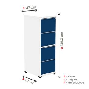 Produto confeccionado em chapa de aço 26 e 24, destinado a utilização de armazenamento de documentos por meio de pastas suspensas, com visual moderno possibilitando uma harmonia em seu ambiente de trabalho. Acabamento da Gaveta: Pintura Ambiente Principal: Escritório codigo_ean: 7900288080226 Complexidade da Montagem: Média: pode ser montado por mais de uma pessoa e/ou necessite de maior conhecimento para montagem Cor: Branco/Azul Cor do Produto: Branco/Azul Cor Flex: Não Cor Interna: Branco/Azul delrei Escala de Brilho: Semi-Fosco Escala de Brilho da Gaveta: Semi-Fosco Gaveta com Chave: 01 Informações Complementares: Utilizar um pano levemente umedecido com água, para finalizar utilizar um pano seco. Itens Inclusos: 1 Gaveteiro + 1 Kit Acessórios + 1 Manual de Montagem Linha ou Coleção: OF04SLTCM Manual de Montagem e Instalação: https://product-hub-prd.madeiramadeira.com.br/646481/documents/db2d381c-257e-4029-b72a-d1ad198cdd3f86723711e9870011.pdf Marca: Pandin Móveis Material da Gaveta: Aço Material Principal: Aço Montagem Flex: Não Necessita Montagem: Sim Origem do Produto: Nacional Peso: 24,76 kg Peso Máximo por Gaveta: 25 kg Possui Acabamento na Parte de Trás: Não Possui Gaveta para Pasta Suspensa: Não Possui Portas: Não Possui Prateleiras: Não Recomendações de Uso, Manutenção e Limpeza: Utilizar um pano levemente umedecido com água, para finalizar utilizar um pano seco. Sapatas Niveladoras: Sim Sistema de Montagem: Encaixe Suporta Até (kg): 100 kg Tipo de Corrediça da Gaveta: Metálica Telescópica Tipo de Puxador da Gaveta: Embutido