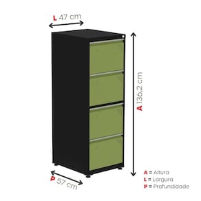 Produto confeccionado em chapa de aço 26 e 24, destinado a utilização de armazenamento de documentos por meio de pastas suspensas, com visual moderno possibilitando uma harmonia em seu ambiente de trabalho. Acabamento da Gaveta: Pintura Ambiente Principal: Escritório codigo_ean: 7900288080202 Complexidade da Montagem: Média: pode ser montado por mais de uma pessoa e/ou necessite de maior conhecimento para montagem Cor: Preto/Verde Cor do Produto: Preto/Verde Cor Flex: Não Cor Interna: Preto/Verde Escala de Brilho: Semi-Fosco Escala de Brilho da Gaveta: Semi-Fosco Gaveta com Chave: 01 Informações Complementares: Utilizar um pano levemente umedecido com água, para finalizar utilizar um pano seco. Itens Inclusos: 1 Gaveteiro + 1 Kit Acessórios + 1 Manual de Montagem Linha ou Coleção: OF04SLTCM Manual de Montagem e Instalação: https://product-hub-prd.madeiramadeira.com.br/646481/documents/db2d381c-257e-4029-b72a-d1ad198cdd3f86723711e9870011.pdf Marca: Pandin Móveis Material da Gaveta: Aço Material Principal: Aço Montagem Flex: Não Necessita Montagem: Sim Origem do Produto: Nacional Peso: 24,76 kg Peso Máximo por Gaveta: 25 kg Possui Acabamento na Parte de Trás: Não Possui Gaveta para Pasta Suspensa: Não Possui Portas: Não Possui Prateleiras: Não Recomendações de Uso, Manutenção e Limpeza: Utilizar um pano levemente umedecido com água, para finalizar utilizar um pano seco. Sapatas Niveladoras: Sim Sistema de Montagem: Encaixe Suporta Até (kg): 100 kg Tipo de Corrediça da Gaveta: Metálica Telescópica Tipo de Puxador da Gaveta: Embutido