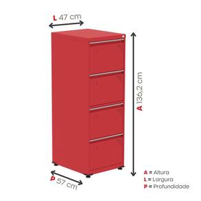 Produto confeccionado em chapa de aço 26 e 24, destinado a utilização de armazenamento de documentos por meio de pastas suspensas, com visual moderno possibilitando uma harmonia em seu ambiente de trabalho. Acabamento da Gaveta: Pintura Ambiente Principal: Escritório codigo_ean: 7900288076861 Complexidade da Montagem: Média: pode ser montado por mais de uma pessoa e/ou necessite de maior conhecimento para montagem Cor: Vermelho Cor do Produto: Vermelho Cor Flex: Não Cor Interna: Cinza Escala de Brilho: Semi-Fosco Escala de Brilho da Gaveta: Semi-Fosco Gaveta com Chave: 01 Informações Complementares: Utilizar um pano levemente umedecido com água, para finalizar utilizar um pano seco. Itens Inclusos: 1 Gaveteiro, 1 Kit Ferragens e 1 Manual de Montagem Linha ou Coleção: OF04SLTCM Manual de Montagem e Instalação: https://product-hub-prd.madeiramadeira.com.br/646481/documents/db2d381c-257e-4029-b72a-d1ad198cdd3f86723711e9870011.pdf Marca: Pandin Móveis Material da Gaveta: Aço Material Principal: Aço Montagem Flex: Não Necessita Montagem: Sim Origem do Produto: Nacional Peso: 24,76 kg Peso Máximo por Gaveta: 25 kg Possui Acabamento na Parte de Trás: Não Possui Gaveta para Pasta Suspensa: Não Possui Portas: Não Possui Prateleiras: Não Recomendações de Uso, Manutenção e Limpeza: Utilizar um pano levemente umedecido com água, para finalizar utilizar um pano seco. Sapatas Niveladoras: Sim Sistema de Montagem: Encaixe Suporta Até (kg): 100 kg Tipo de Corrediça da Gaveta: Metálica Telescópica Tipo de Puxador da Gaveta: Embutido