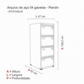 Gaveteiro Arquivo em Aço 4 Gavetas Pandin Móveis Azul Del Rey - Cinza