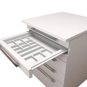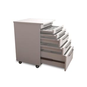 DEKI Linha Premium- Gaveteiro Auxiliar com 5 Gavetas + Bandeja RemovívelSe você busca organização, praticidade e qualidade o Gaveteiro Auxiliar Premium é a escolha certa! Fabricado em MDP da mais alta qualidade que garante sua durabilidade e resistência por um tempo muito maior. Confira toda nossa linha de produtos em nosso perfil.Nossos móveis são á Pronta Entrega e são ENVIADOS MONTADOS, prontos para uso!;Acompanha bandeja divisória para organização;Nossos móveis são fabricados em observância as normas da ANVISA;Fácil limpeza e desinfeção;Medidas: Largura 53cm x Altura 76cm x Profundidade 51cm;Puxadores em LIGA Importada;Material 100% em MDF Branco;CORREDIÇAS TELESCÓPICAS, garantindo leveza no abrir e fechar das gavetas;Tradição desde 1986.?Imagens meramente ilustrativas?ATENÇÃO A PRIMEIRA GAVETA NÃO ABRE, É FIXA, SERVE APENAS PARA MOVIMENTAR O GAVETEIRO.