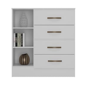Feito em MDP. Contém 4 gavetas com corrediças metálicas possibilitando um melhor delislizamento e aberto, e 1 porta.