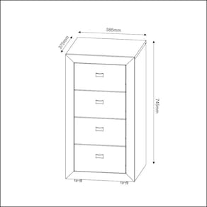 Detalhes do produto: - É de responsabilidade do montador seguir as instruções do Manual de Montagem, que são fundamentais para garantir a estrutura do móvel; - Produto enviado desmontado, a montagem é simples e pode ser realizada facilmente com a ajuda do manual de montagem; - A fixação das peças e/ou acessórios é feita por parafusos, cavilhas e minifix; - Possui 4 gavetas que suportam 3kgs cada e com corrediças metálica; - A estrutura do fundo é em MDP 3mm na cor do móvel; - Possui 4 puxadores ponto em plástico e 4 rodízios plásticos; - Garantia de 03 meses contra defeitos de fabricação; - Produto suporta até 16kgs.