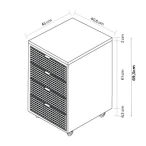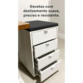 As gavetas, com corrediças telescópicas que possibilitam um deslizamento suave, firme e silencioso, são muito espaçosas e oferecem maior capacidade de armazenamento do que a maioria dos gaveteiros do mercado.