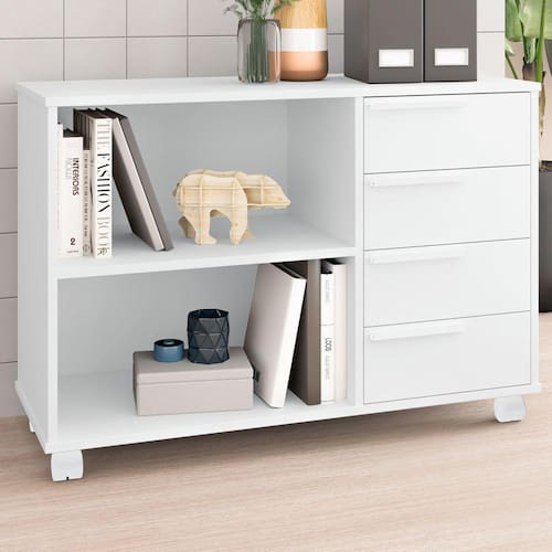 O(a) Gaveteiro 4 Gavetas 1 Prateleira Office Castanho - Brv Móveis é produzido em MDP na escala de brilho Fosco, e possui um grau de dificuldade de montagem: Médio.