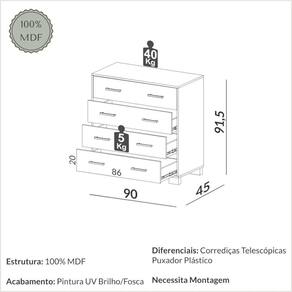 Recomendação de Uso - Use um pano macio e levemente umedecido com água para remover o pó e sujeiras leves. Evite encharcar o MDF.Para manchas mais resistentes, você pode usar um pano com uma solução de água e sabão neutro. Passe suavemente na área afetada e seque imediatamente com um pano seco para evitar a absorção de umidade.Evite a exposição direta ao sol ou a fontes de calor para prevenir o desbotamento da cor.Para a manutenção das gavetas, use uma cera de silicone incolor para lubrificar os trilhos ocasionalmente, assegurando um deslizar suave.