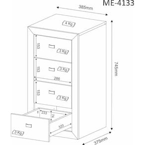 Detalhes do produto: - É de responsabilidade do montador seguir as instruções do Manual de Montagem, que são fundamentais para garantir a estrutura do móvel; - Produto enviado desmontado, a montagem é simples e pode ser realizada facilmente com a ajuda do manual de montagem; - A fixação das peças e/ou acessórios é feita por parafusos, cavilhas e minifix; - Possui 4 gavetas que suportam 3kgs cada e com corrediças metálica; - A estrutura do fundo é em MDP 3mm na cor do móvel; - Possui 4 puxadores ponto em plástico e 4 rodízios plásticos; - Garantia de 03 meses contra defeitos de fabricação; - Produto suporta até 16kgs.
