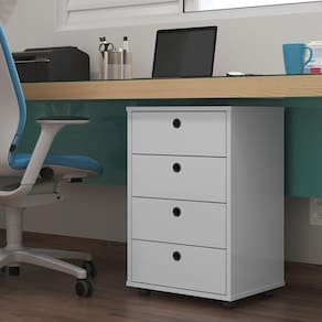 Gaveteiro possui design delicado e moderno, possui 4 Gavetas com corrediça metálica e puxadores modelo cava. Gaveteiro perfeito para acomodar seus documentos, ótimo produto para ter em seu escritório, sala, quarto ou até no seu canto de estudos, deixe seu ambiente moderno.