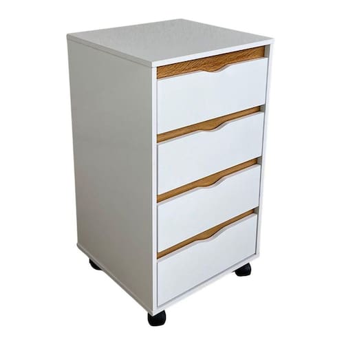 Destaques: - 04 gavetas com corrediças metálicas; - 04 rodízios; - Gavetas com sistema de abrir e fechar sem puxadores.