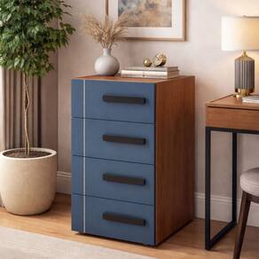 O(a) Gaveteiro Lisboa 4 Gavetas Azul/Freijó - Politorno é produzido em MDP na escala de brilho Semi-Fosco, e possui um grau de dificuldade de montagem: Médio.
