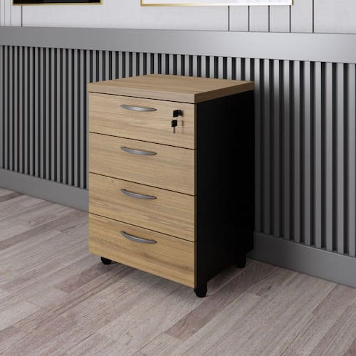 acetinado. Rodízios em nylon com eixo e haste em aço. Acabamento da Gaveta: BP Ambiente Principal: Escritório Complexidade da Montagem: Média: pode ser montado por mais de uma pessoa e/ou necessite de maior conhecimento para montagem Cor: Amadeirado/Preto Cor do Produto: Amadeirado/Preto Escala de Brilho: Fosco Gaveta com Chave: 01 Itens Inclusos: 1 gaveteiro Manual de Montagem e Instalação: https://product-hub-prd.madeiramadeira.com.br/956628/documents/eae0a24f-865b-4692-8381-8626a0903ba42482951159817295336399115.pdf Marca: Espresso Móveis Material da Gaveta: MDP Material Principal: MDP Necessita Montagem: Sim Origem do Produto: Nacional Peso: 20,3 kg Peso Máximo por Gaveta: 10 kg Possui Acabamento na Parte de Trás: Sim Possui Gaveta para Pasta Suspensa: Não Possui Portas: Não Possui Prateleiras: Não Recomendações de Uso, Manutenção e Limpeza: Antes de limpar recomenda-se que seja retirada toda a poeira com um espanador ou flanela seca para evitar riscos na superfície, após utilize um pano umido em água, macio e limpo. Sapatas Niveladoras: Não Sistema de Montagem: parafusos e cavilhas Suporta Até (kg): 65 kg Tipo de Corrediça da Gaveta: Metálica Telescópica Tipo de Puxador da Gaveta: Externo