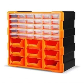Este Gaveteiro Multiuso de Plástico com 39 Gavetas é uma solução versátil e prática para organizar sua área de trabalho. Composto por 30 gavetas pequenas e 9 grandes, oferece amplo espaço para armazenar uma variedade de objetos pequenos, desde componentes de máquinas até acessórios de bricolagem.