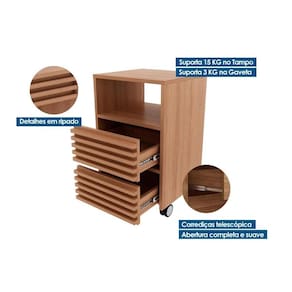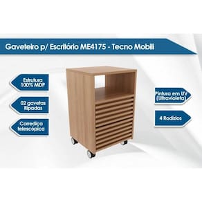Gaveteiro p/ Escritório c/ 2 Gavetas e Rodizios Ripado ME4175 Amêndoa - Tecno Mobili - Marrom