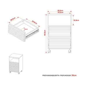Dimensões(Cm): Comprimento(Profundidade): 36cm x Largura: 38,5cm x Altura: 60,5cm