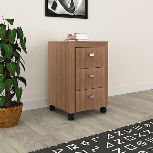 Características: Estrutura em MDP Acabamento em BP 03 Gavetas Corrediças Metálicas Puxadores de Plástico Possui Rodízios Peso Suportado 4kg no Tampo e 3kg cada Gaveta