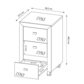 Características: Estrutura em MDP Acabamento em BP 03 Gavetas Corrediças Metálicas Puxadores de Plástico Possui Rodízios Peso Suportado 4kg no Tampo e 3kg cada Gaveta