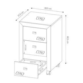 Peso Suportado 4kg no Tampo e 3kg cada Gaveta