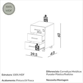 Itens Inclusos: 1 Gaveteiro, Kit Ferragens e Manual de Montagem