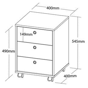 Dimensões do Gaveteiro para Escritório 3 Gavetas com Rodízios Neo: