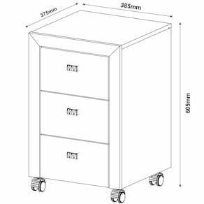 Dimensões do Gaveteiro para Escritório 3 Gavetas com Rodízios: