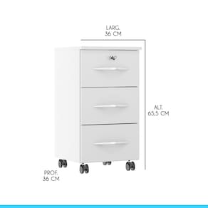 O Gaveteiro Menu Móveis é móvel moderno e prático que traz versatilidade e organização para o seu ambiente, seja no escritório, quarto ou outros espaços. Com três gavetas, uma delas com tranca em chave, é perfeito para guardar seus objetos pessoais com segurança. Disponível na elegante cor branca, o Gaveteiro Menu Móveis é produzido com materiais de alta qualidade, garantindo durabilidade e resistência. Além disso, possui pés em rodízios, facilitando a movimentação. Adquira já o seu gaveteiro e desfrute de conforto, qualidade e bom preço em um único produto. CARACTERÍSTICAS TÉCNICAS: - Produzida em MDP de 15 mm - Acabamento UV na cor Branco - Gavetas com Corrediça Metálica - Gaveta com Tranca e Chave - Puxadores Alça em ABS na cor Cromado - Pés em Rodízios Plásticos na cor Preto INFORMAÇÕES TÉCNICAS: Altura: 65,5 Cm Largura: 36 Cm Profundidade: 36 Cm INFORMAÇÕES ADICIONAIS: - ATENÇÃO: Não trabalhamos e não nos responsabilizamos pela montagem do móvel. Antes da montagem conferir se o produto está de acordo com o que comprou, produto montado e danificado pela montagem não será aceito troca. Montagem e instalação por conta do comprador. - As imagens ambientadas são meramente ilustrativas e podem apresentar itens que não compõe o produto. As cores do produto podem variar de acordo com o monitor, a iluminação do ambiente ou sua percepção visual. - Limpeza: Deve ser feita com pano macio e seco ou levemente umedecido com água e sabão neutro. Não devem ser utilizados abrasivos como palha de aço e objetos cortantes. Garantia para defeitos de fabricação conforme Código de Defesa do Consumidor. Ean: 7793484499769 Ean: 7793484499769