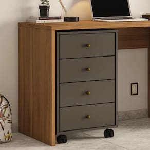Já reparou o quanto ter gavetas por perto faz toda a diferença, principalmente para quando for estudar ou trabalhar? Uma ótima solução para este problema é apostar no Gaveteiro Presence da Demóbile. Compacto, ele pode ocupar o canto que você quiser sem atrapalhar o funcionamento do espaço. Além das 4 gavetas, o móvel ainda possui rodízios! Para garantir a qualidade do produto dentro da embalagem, as caixas são revestidas por um plástico termo encolhível e todas as peças são separadas por isomanta, tudo para preservar e evitar o atrito entre as peças dentro da embalagem. Você contará também com um manual com o passo a passo para auxiliar no momento da sua montagem. Acabamento da Gaveta: Impressão Ambiente Principal: Escritório Complexidade da Montagem: Baixa: pode ser montado por uma pessoa sozinha Cor: Amendola/Grafite Cor do Produto: Amendola/Grafite Cor Interna: Amendola Escala de Brilho: Fosco Escala de Brilho da Gaveta: Fosco Gaveta com Chave: Não Informações Complementares: Itens Inclusos: 1 Gaveteiro, Kit Ferragens e Manual De Montagem. Linha ou Coleção: Manual de Especificação Técnica: Manual de Montagem e Instalação: https://cdn2.madeiramadeira.com.br/atributo/demobile/502294-esquema-de-montagem-gaveteiro.pdf Material da Gaveta: MDP Material Principal: MDP Necessita Montagem: Sim Origem do Produto: Nacional Peso: 16 Peso Máximo por Gaveta: 3 kg Possui Portas: Não Possui Prateleiras: Não Recomendações de Uso, Manutenção e Limpeza: Flanela Seca. Resistente à Chuva: Rodízio com Trava: Sim Sapatas Niveladoras: Sim Sistema de Montagem: Parafusos e Cavilhas. Suporta Até (kg): 12 Tamanho: Tipo de Corrediça da Gaveta: Metálica Simples Tipo de Puxador da Gaveta: Externo