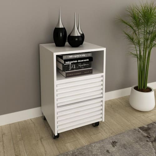 Gaveteiro Para Escritório Ripado Com Rodizio 2 Gavetas ME4175 Tecno Mobili - Branco