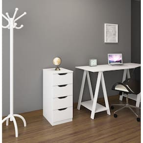 Gaveteiro Para Quarto E Escritório 4 Gavetas Cor: Branco Gaveteiro Multivisão com 4 gavetas. Gaveteiro com 4 gavetas, prático e funcional. A peça apresenta linhas retas e dispensa o uso de puxadores. Possui 4 gavetas com corrediça plástica. Ideal para valorizar ambientes. CaracterísticasFrente: 30,3 cmAltura: 71,2 cmProfundidade: 40 cmPeso do gaveiteiro: 12 KgMaterial: madeira MDP com pintura UV e corrediça plástica. Montagem: é bem simples Você receberá o manual de instruções e o kit montagem completo. Limpeza: utilizar um pano limpo e seco para retirar o pó. Se preferir, umedeça levemente com água o pano e em seguida passe um pano seco. Para tirar manchas, use um pano levemente umedecido em uma solução de água e sabão neutro e, na sequência, passe o pano seco. Nunca use produtos abrasivos.