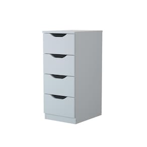 Gaveteiro com 4 gavetas, prático e funcional. A peça apresenta linhas retas e dispensa o uso de puxadores. Possui 4 gavetas com corrediça plástica. Ideal para valorizar ambientes.