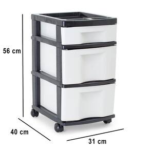 Descrição:Você está comprando 1 gaveteiro plástico da marca agraplastCor branca2 gavetas grandes brancas e 1 gaveta pequena brancaEstrutura preta4 rodízios de plástico pretoMedidas 56 cm altura com os rodízios montados x 40cm profundidade x 31 cm larguraMedidas internas das gavetas: Grande 35 x 24 x 16,5Pequena 35 x 24 x 8Ideal para organização em geralGarantia: 3 meses para defeitos de fabricação