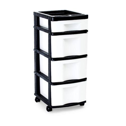 Descrição do produto3 gavetas grandes brancas1 gaveta pequena branca Estrutura preta4 rodízios de plástico pretoMedidas 78 cm altura com os rodízios montados x 40cm profundidade x 31 cm larguraMedidas internas das gavetas: Grande 35 x 24 x 16,5Pequena 35 x 24 x 8Ideal para organização em geral