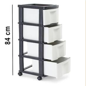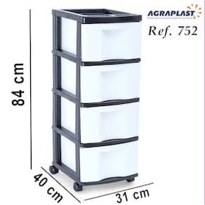 Gaveteiro plástico branco 4 gavetas grandes cod.752 agraplast estrutura preta e gavetas brancas 4 gavetas grandes brancas Estrutura preta 4 rodízios de plástico preto